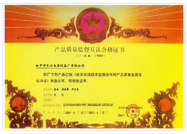 产品质量监督互认合格证书